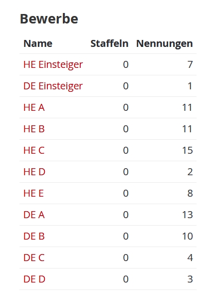 Wie schon seit Jahren werden folgende Bewerbe gespielt: