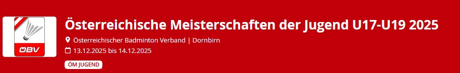 Und weiter gehts mit den Nachwuchsspielern nach Dornbirn. Am 13.-14.12.25 werden dort die U17 und U19 Meisterschaften, 10 Bewerbe bei 73 Nennungen, ausgetragen.