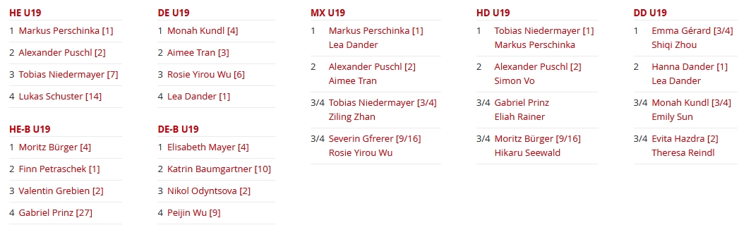 Da sich die Turnierform der U11-15 Bewerbe änderte - Stichwort Kontingentplätze - sind hohe Punkte essentiell für eine Startberechtigung in der Kategorie "Schüler". Gerade in der U19 kann man sehr viele Punkte mitnehmen und das nutzten vor allem unsere jungen Spielerinnen Emma Gérard, Emily Sun und Monah Kundl. Einige Altersklassen "rauf" zu spielen und dann auch noch diese Ergebnisse zu erzielen, ist durchaus beeindruckend!
